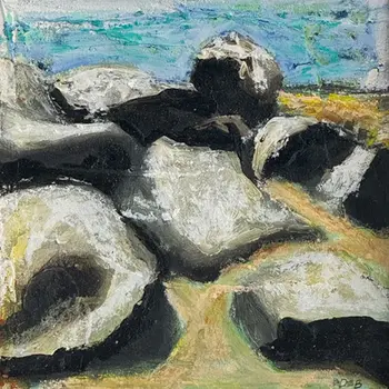 I’m not sure what my fascination with rocks has been, but it has always been there! I’ve collected them; I’ve gazed at them; I’ve photographed them and now I paint them. I’ve just looked up the symbolism of ‘rock’ and it says, that they are the ultimate embodiment of permanence, stability and reliability. That works for me!